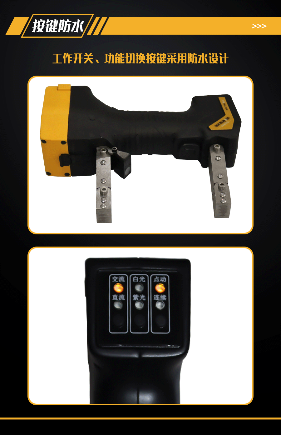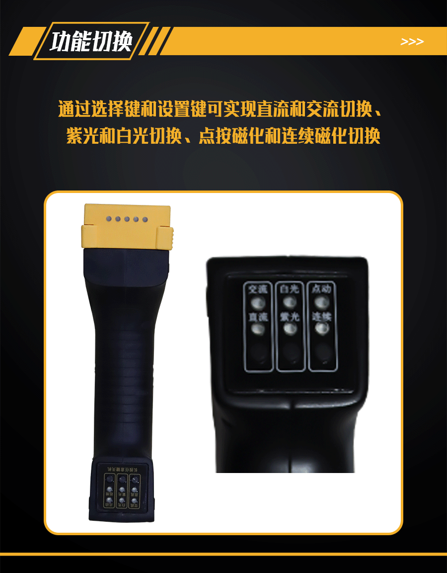 4.磁軛配有防水防油磁化按鍵和交直流、黑白光功能、點按和連續磁化切換按鍵。