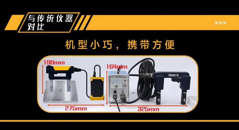 1、LKMT-D8充電式交直流磁軛探傷儀,采用鋰電池電源供電,無需外接110V或220V電源即可產(chǎn)生交流或直流磁場進(jìn)行探傷;