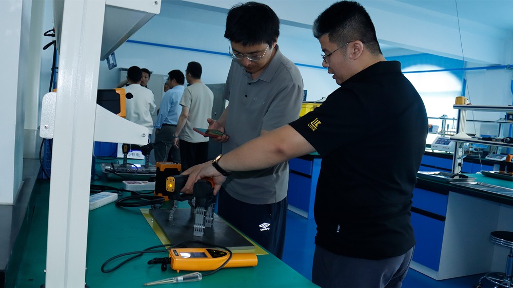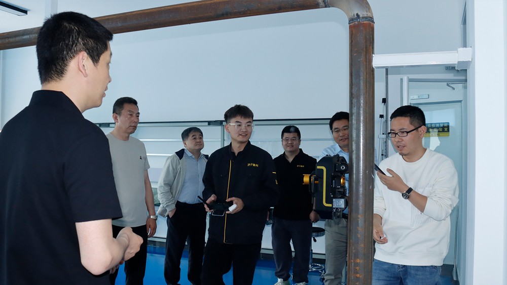 專(zhuān)家組一行參觀了我公司埋地管道實(shí)訓(xùn)基地、無(wú)塵車(chē)間、研發(fā)中心實(shí)驗(yàn)室等,對(duì)我公司自主研發(fā)的無(wú)線式磁粉探傷儀、管道磁粉探傷儀、角焊縫磁粉探傷儀、腐蝕測(cè)厚機(jī)器人、ACFM交流電磁場(chǎng)檢測(cè)儀等設(shè)備進(jìn)行性能測(cè)試,均達(dá)到預(yù)期效果,對(duì)我公司研發(fā)、生產(chǎn)及售后能力給予高度評(píng)價(jià)。