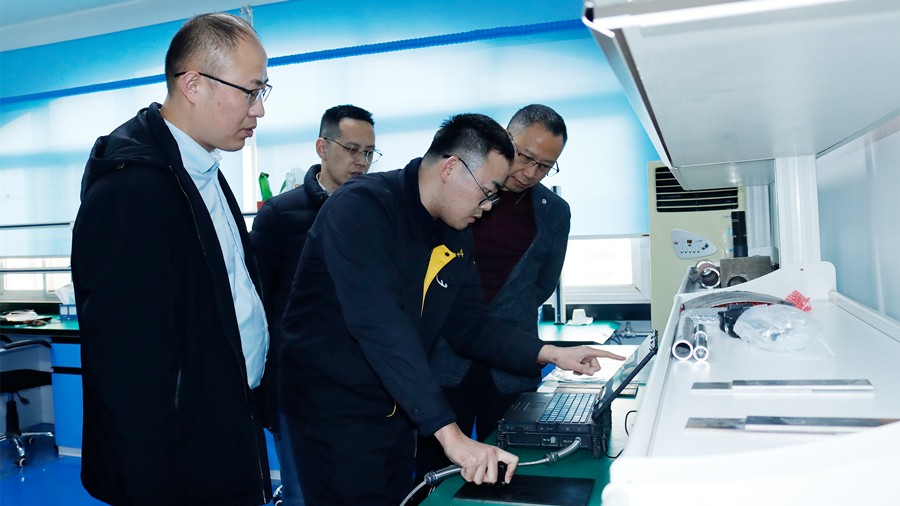 2024年1月10日,廣東省特種設(shè)備檢測研究院順德檢測院一行蒞臨我司參觀指導(dǎo),先后參觀了我公司無塵車間、實(shí)驗室等,對我公司自主研發(fā)的無線式磁粉探傷儀、管道磁粉探傷儀、角焊縫磁粉探傷儀、腐蝕測厚機(jī)器人及聯(lián)合中國石油大學(xué)(華東)共同研發(fā)的ACFM交流電磁場檢測儀等設(shè)備進(jìn)行性能測試,均達(dá)到預(yù)期效果,并對我公司研發(fā)、生產(chǎn)及售后能力給予高度肯定。