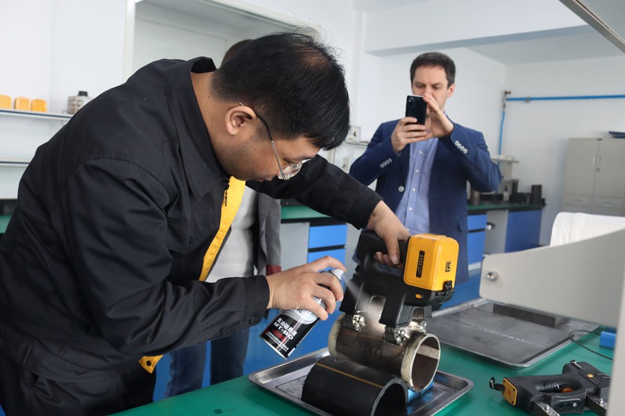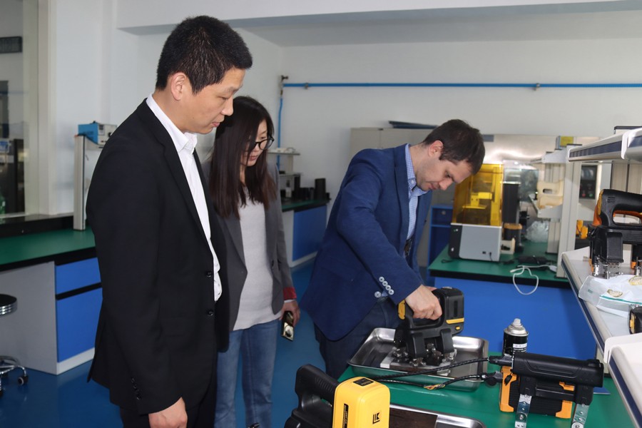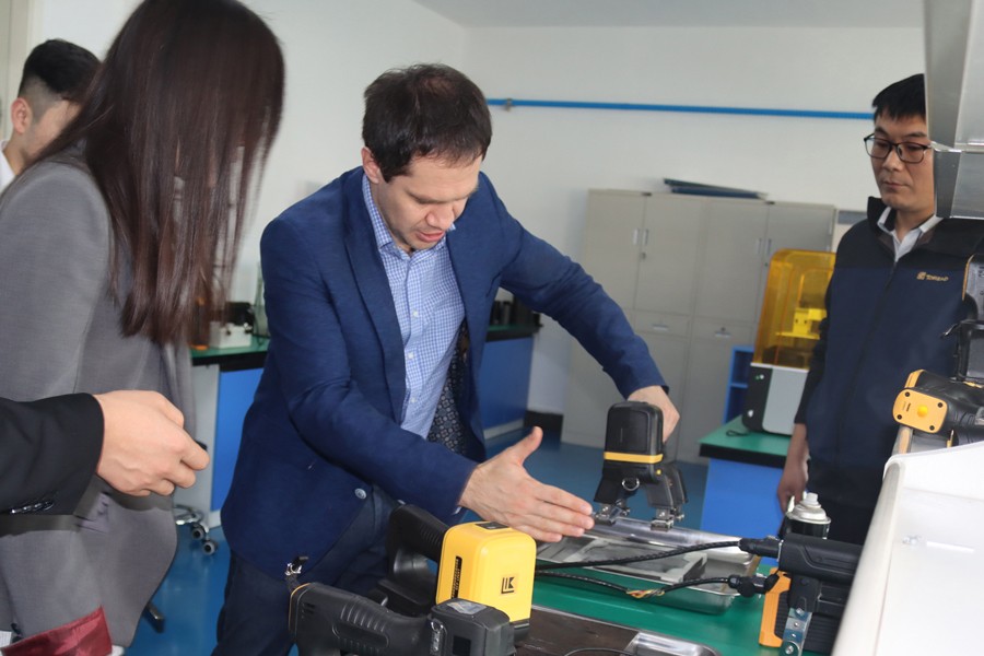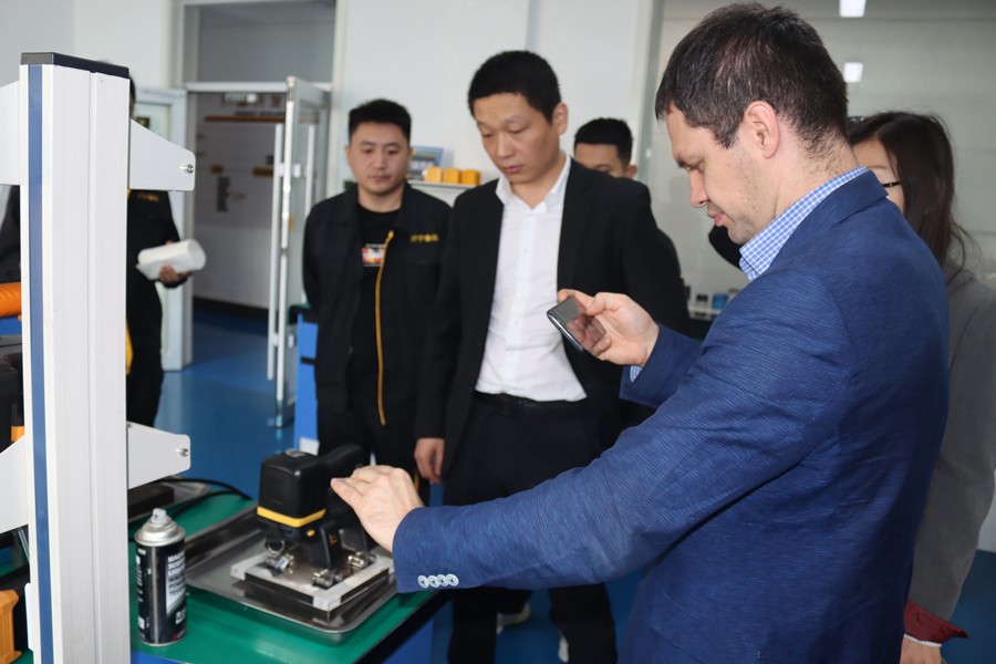 Denis先生先后參觀了我公司無塵車間、實驗室等,對我公司自主研發的無線式磁粉探傷儀、管道磁粉探傷儀、角焊縫磁粉探傷儀等設備進行性能測試,均達到預期效果,并對我公司研發、生產及售后能力給予高度肯定。