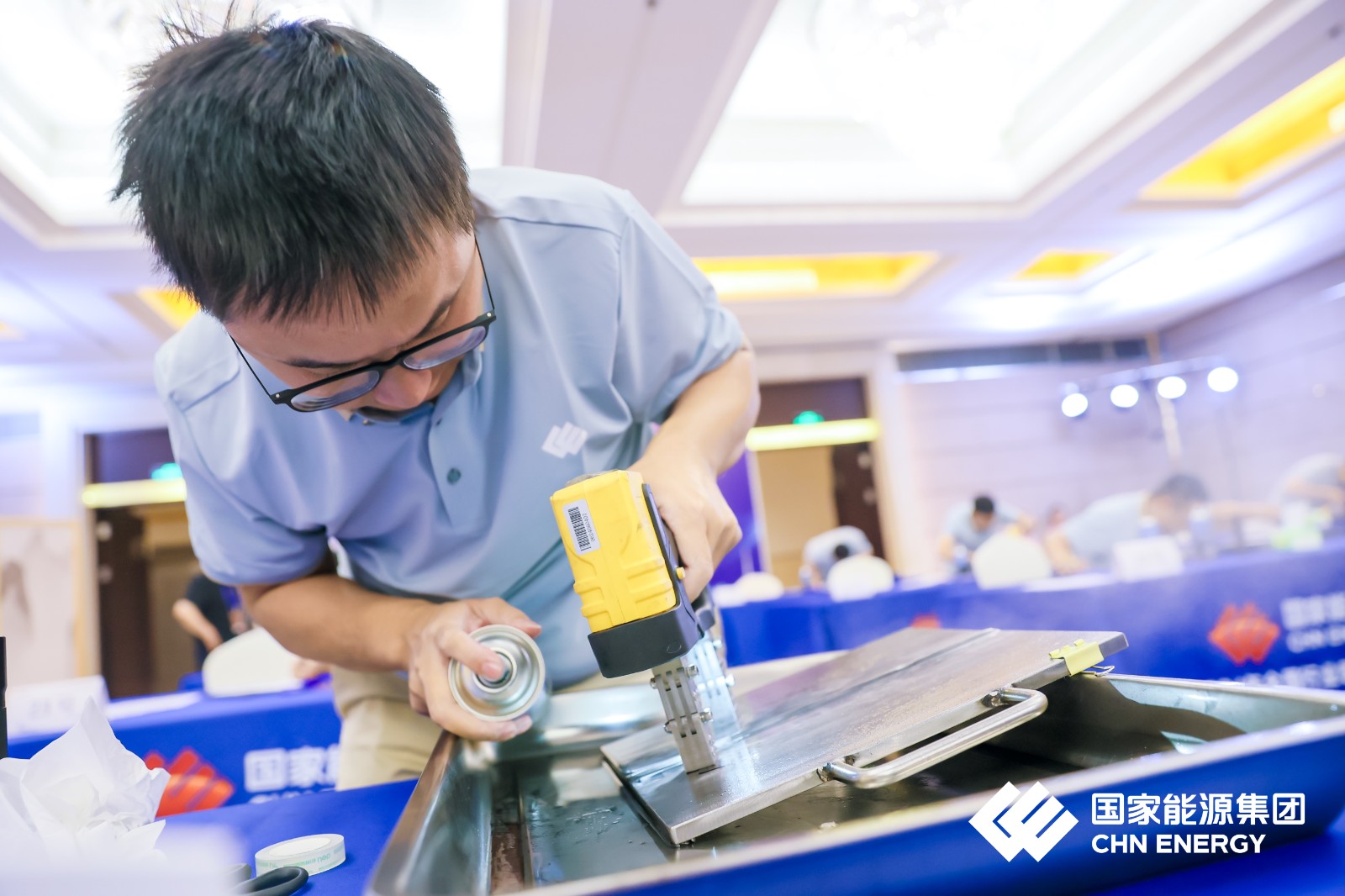 濟寧魯科助力國家能源集團2024年全國行業職業技能競賽,國家能源投資集團有限公司職業技能競賽(無損檢測員)實操賽場 ?磁粉檢測。
