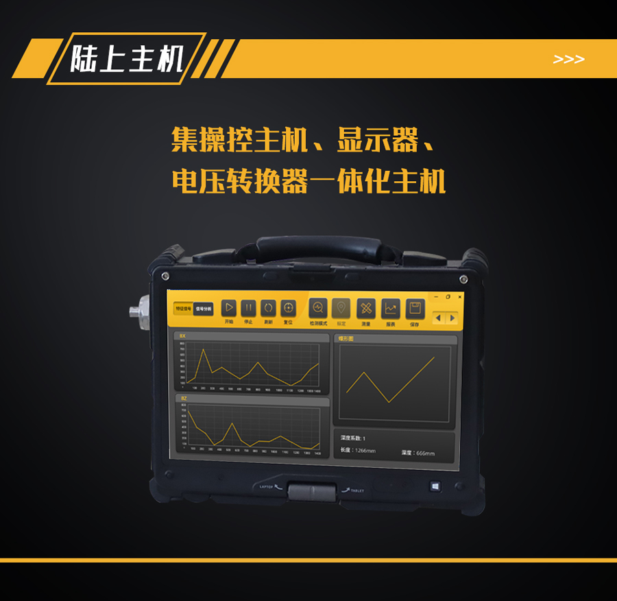 1、主機系統:主機采用Windows7(64位)操作系統,集操控主機、顯示器、電壓轉換器一體化主機;配備觸摸屏及鍵盤輸入功能,具備多類型數據接口,便于檢測人員結果分析、數據處理、報告生成;整機結構緊湊,便攜式設計滿足水上平臺及控制室狹小空間需求;