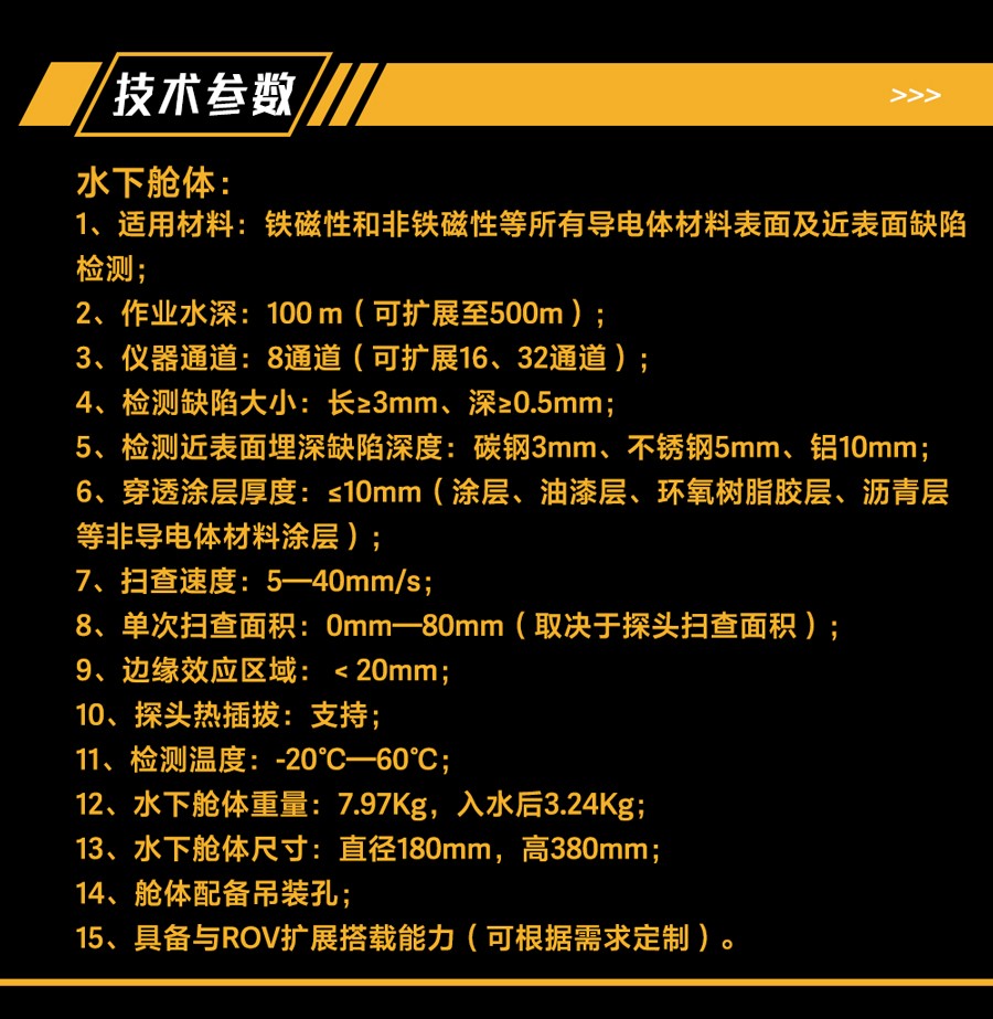 3、可檢測表面 350℃高溫中的非疲勞裂紋;可用于水下500m 深度結構缺陷檢測;