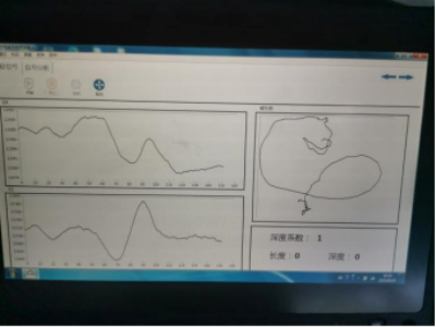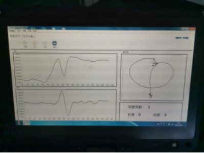 圖4模擬2mm涂層掃查(左)和信號圖(右)