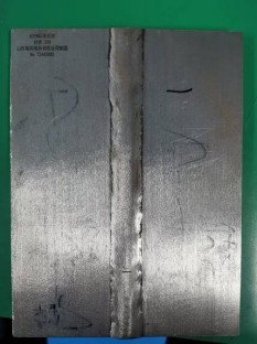 分別制作帶涂層對比試件和無涂層對比試塊進行試驗測試,對比試件為兩塊焊接在一起的20#鋼板,試件尺寸為200*150*13mm(長×寬×厚)。在一側焊趾邊緣通過高精度機加工預制兩處不同長度、深度的裂紋,其中1號裂紋尺寸為長50mm、深5mm,2號裂紋尺寸為長6mm、深2.5mm,3號裂紋是橫向裂紋,尺寸為長6mm、深2.5mm鋼板上包覆厚度0.3mm左右厚度的非金屬涂層,如圖4所示。