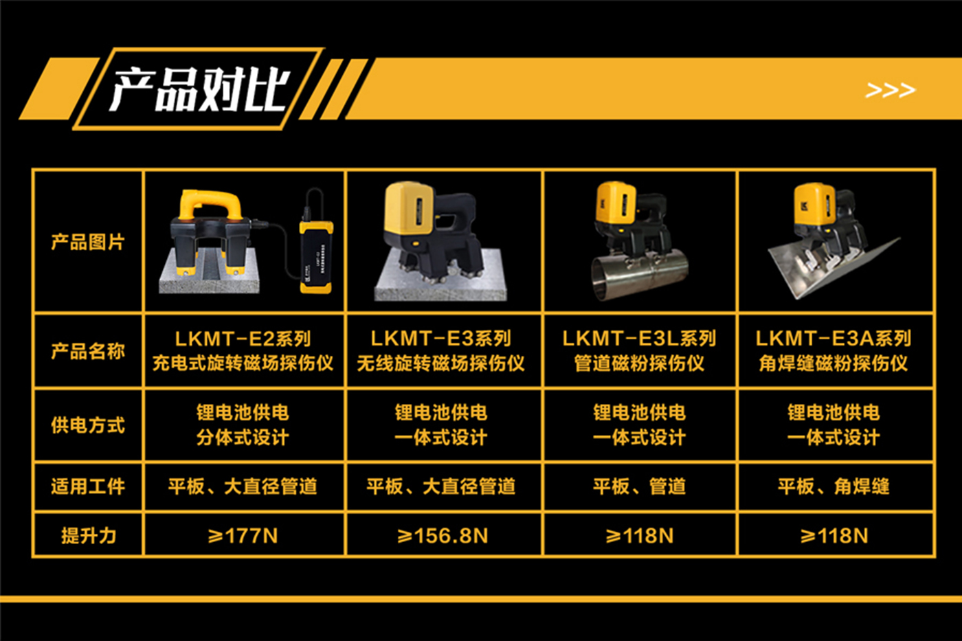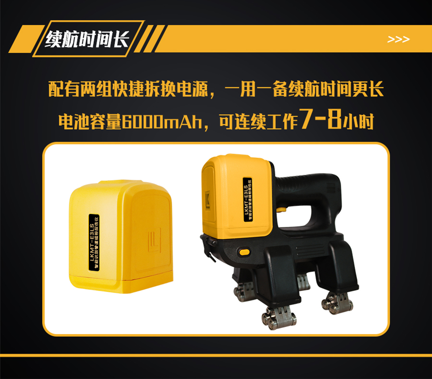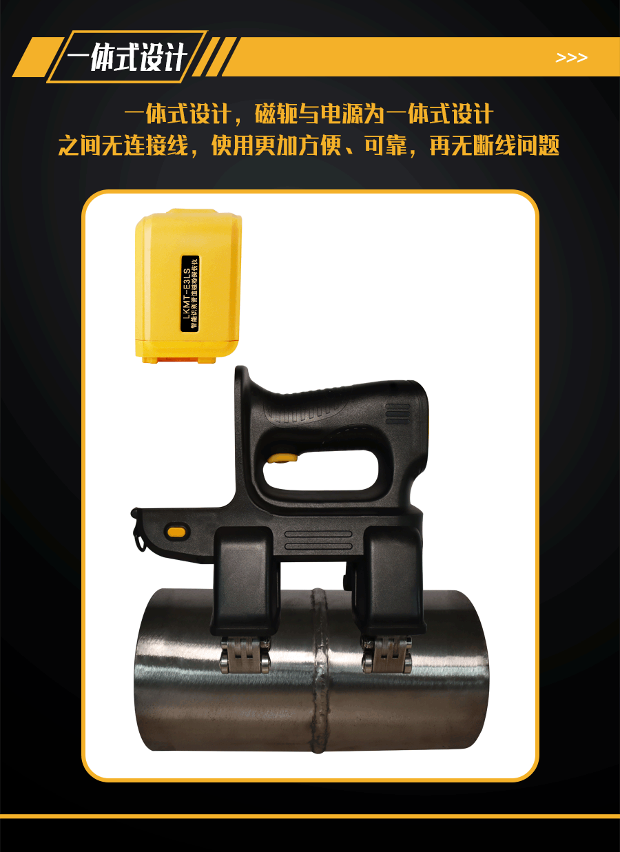 1、LKMT-E3LS一體式旋轉磁場管道磁粉探傷儀,探頭與鋰電池一體式設計,無需使用線鏈接;