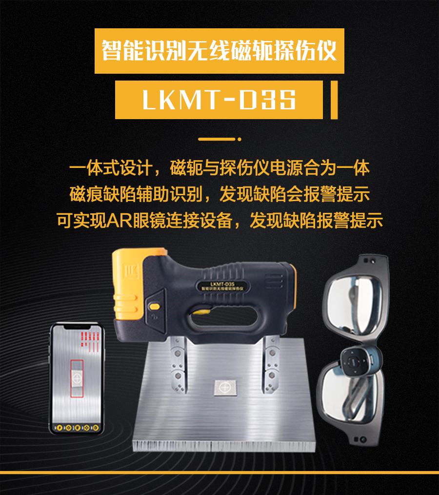 1、LKMT-D3S一體式交直流磁軛探傷儀,探頭與鋰電池一體式設計,無需使用線鏈接。