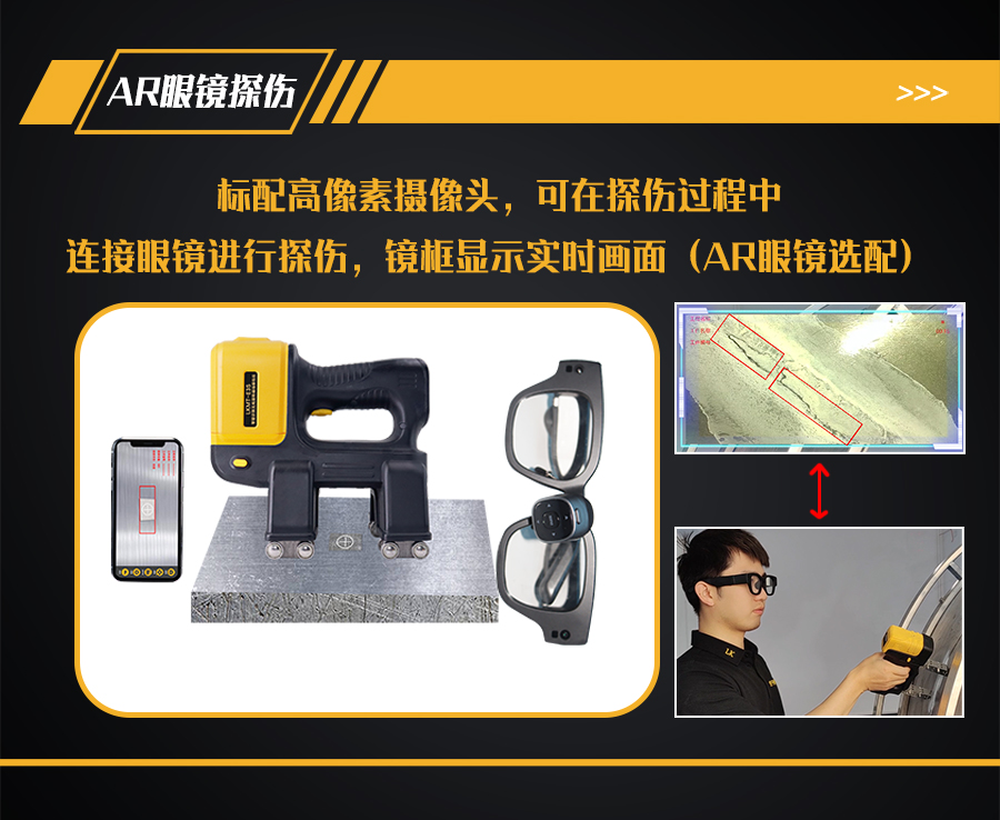 9、探頭內部裝有500萬像素攝像頭,手機、平板電腦或AR眼鏡等手持終端安裝APP軟件,通過Wi-Fi與探頭鏈接,手持終端實時顯示探傷狀態。